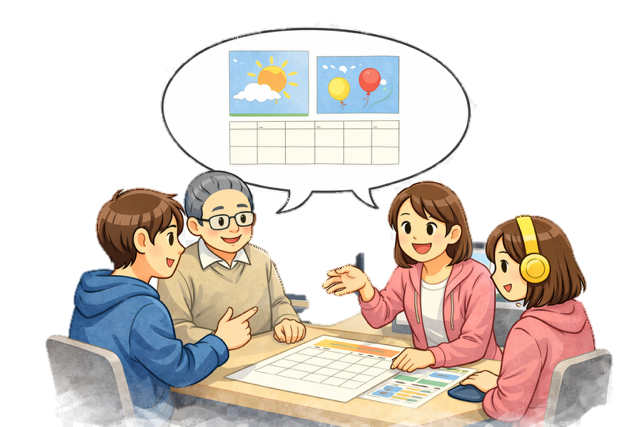 話し合いの結果、作成する内容はカレンダーに決定しました。